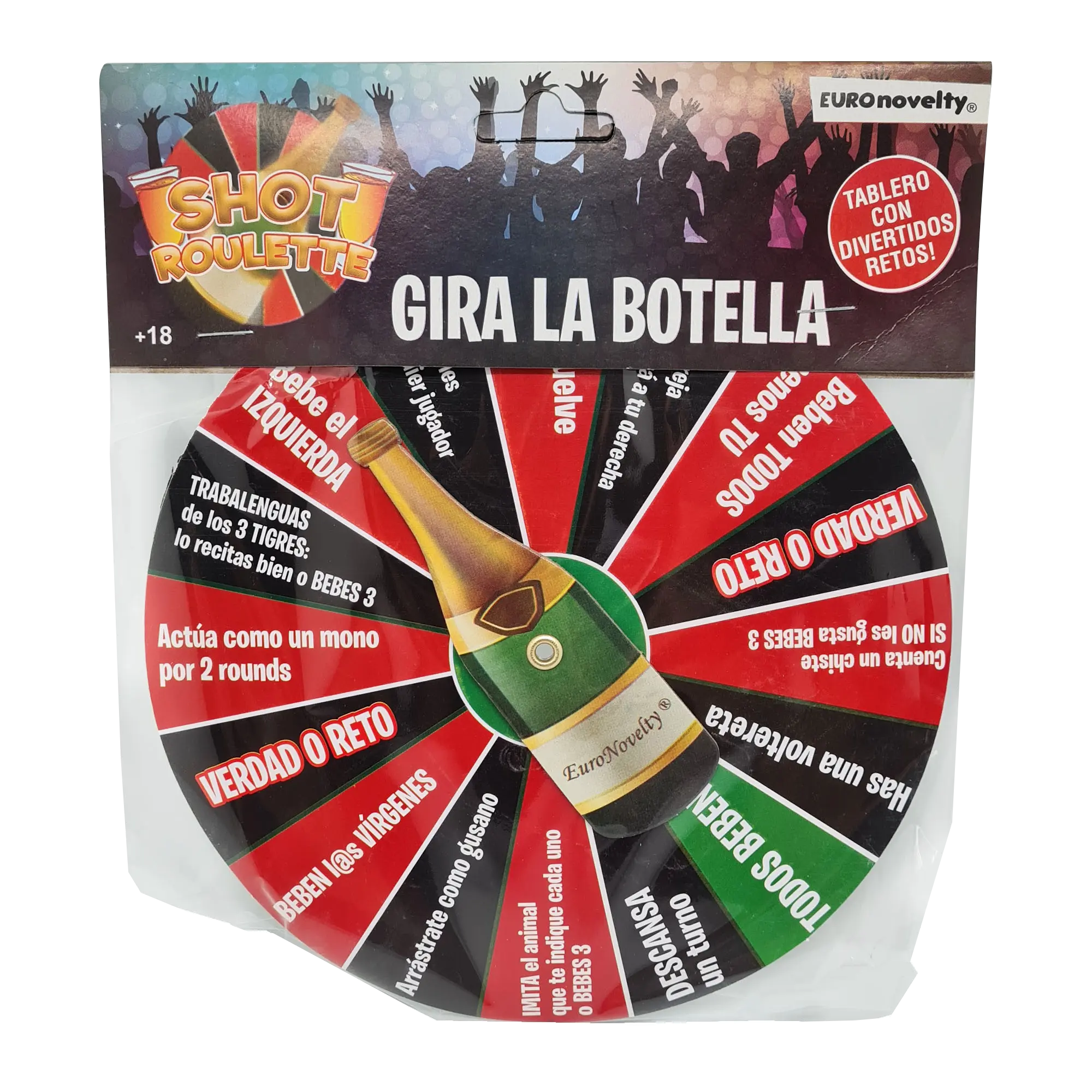 Juego “Gira la Botella”, ideal para animar fiestas y reuniones entre adultos. Incluye tablero con divertidos retos y castigos para romper el hielo y subir el ambiente. Perfecto para convivencias y noches de fiesta