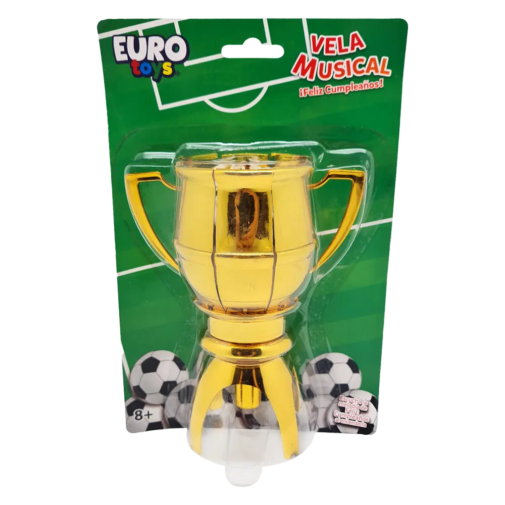 Vela musical en forma de trofeo, ideal para celebrar cumpleaños con temática deportiva. Al encenderse reproduce la melodía de “Feliz Cumpleaños”, convirtiendo el pastel en el centro de la celebración. Perfecta para fiestas infantiles y eventos futboleros. 🏆🎂